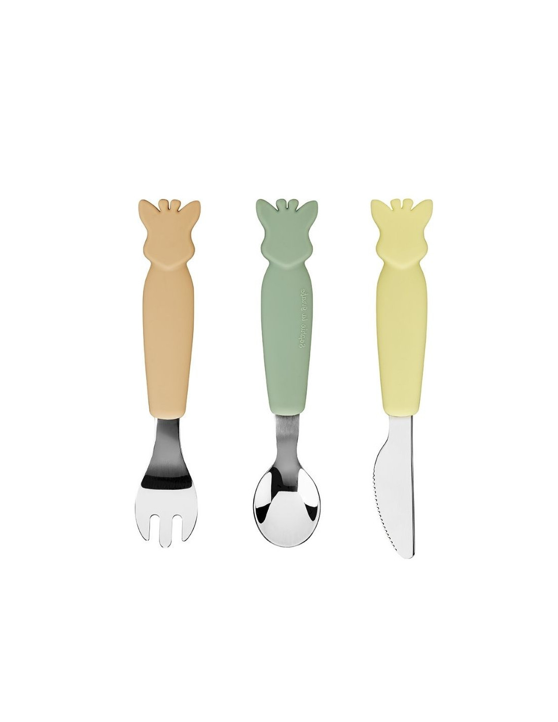 - Cada cubierto tiene un color diferente, combinando con el resto de la vajilla de Sophie la Girafe.