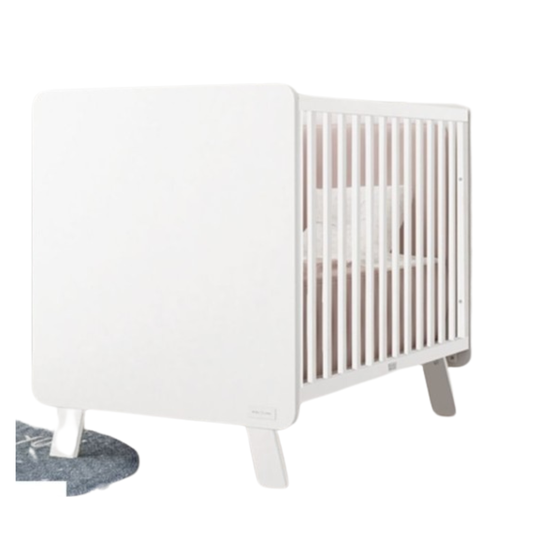 La cuna de 120×60 cm cuenta con lateral móvil y sistema de tornillería oculto para mayor seguridad. Puede convertirse en cuna colecho con el kit opcional.