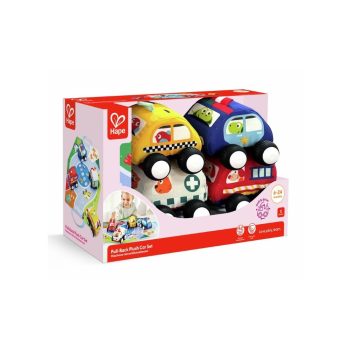 Set de Coches de Peluche Hape | Vehículos suaves con motor retráctil desde 6 meses