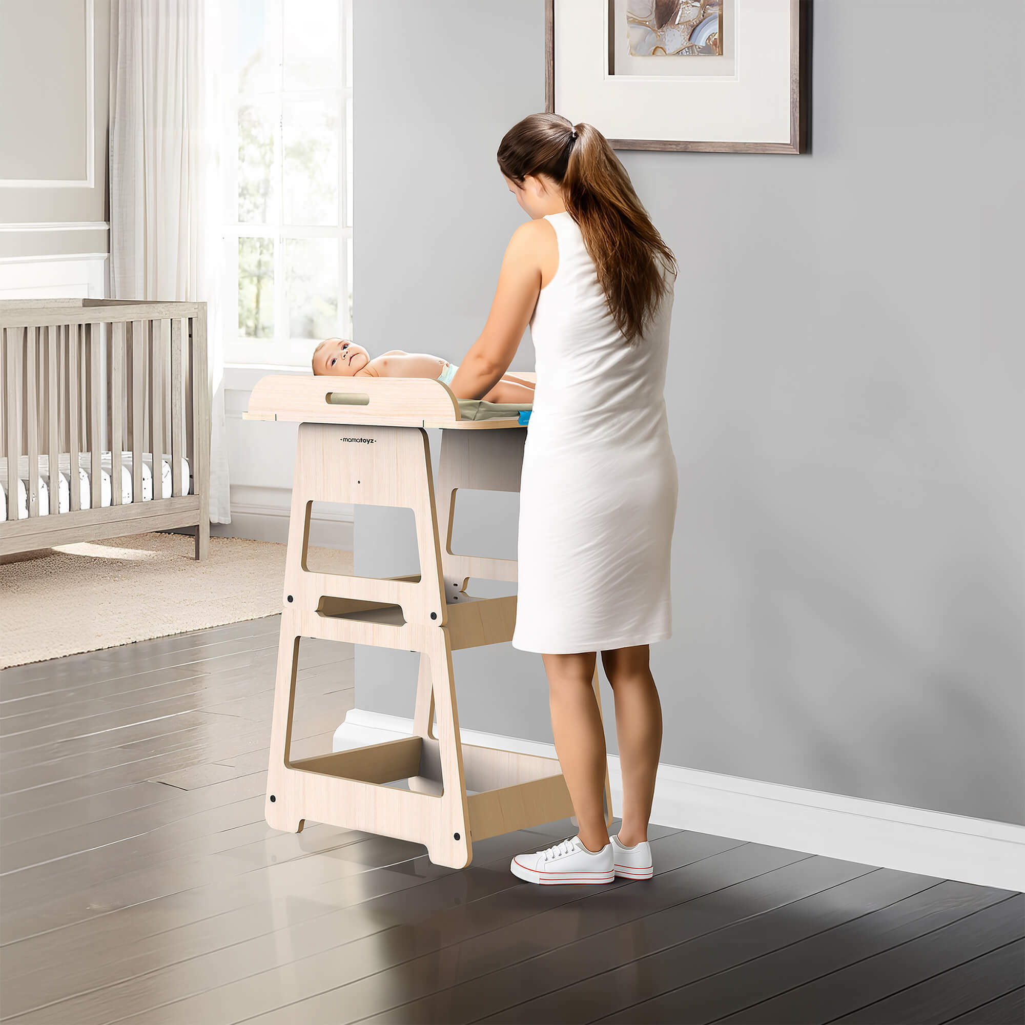 Durante la etapa de recién nacido y primera infancia, el Masali funciona como un cambiador estable y ergonómico, pensado para ofrecer comodidad a los padres y seguridad al bebé.