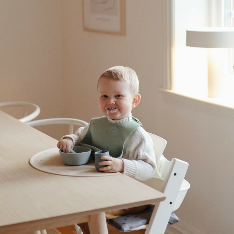 El diseño escandinavo de Mushie combina funcionalidad, seguridad y estética, convirtiendo este pack en un complemento esencial para la hora de comer.