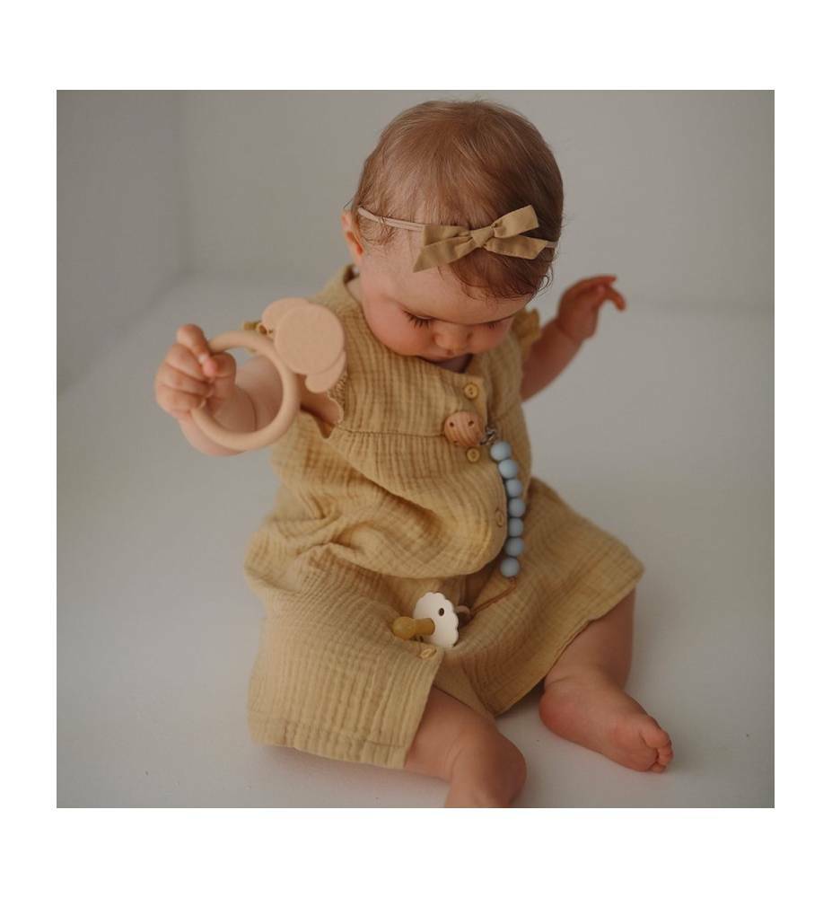 El mordedor Mushie Dog Bog no solo es un accesorio funcional, sino también un bonito detalle decorativo en la habitación o la bolsa del bebé.
