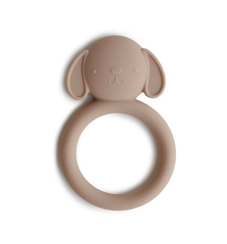 El mordedor de silicona Mushie Dog Bog es una elección ideal para aliviar las encías del bebé y acompañarle en esta etapa con estilo y confort.
