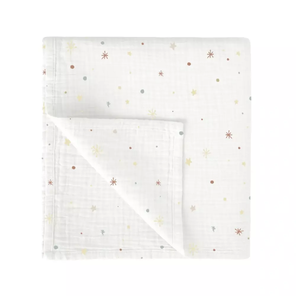 Gracias a su formato 120 × 120 cm, la muselina de bambú BimBi ofrece un uso muy versátil: