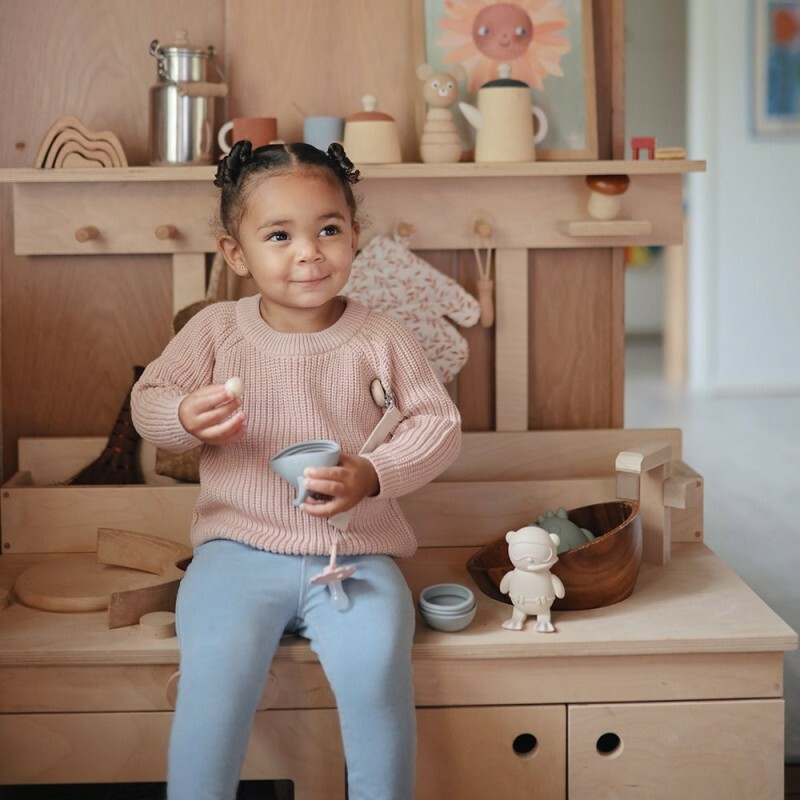 Mushie utiliza solo silicona de grado alimentario, resistente y flexible, garantizando la máxima seguridad para tu bebé y un producto duradero con el que podrá jugar durante años.