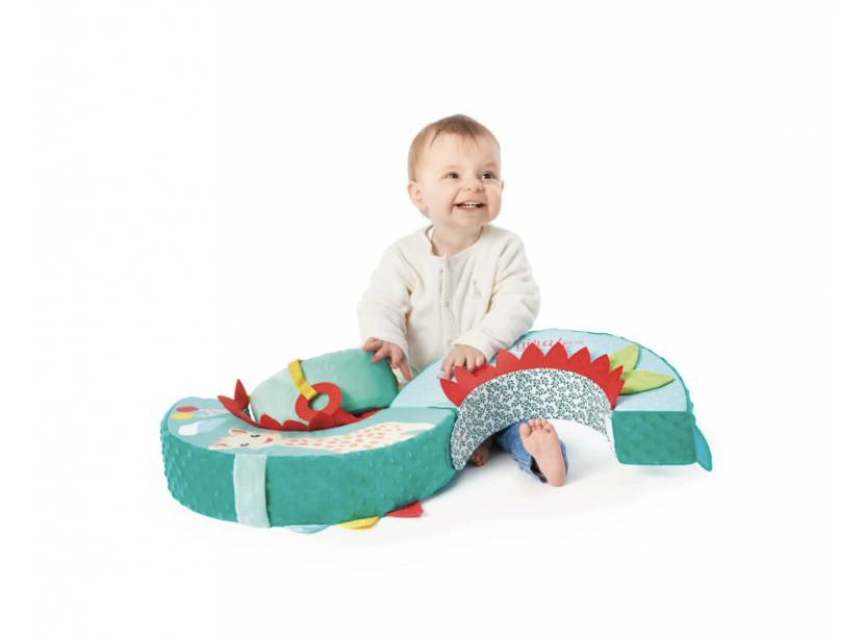 Por un lado, desde los primeros meses, el bebé se despierta y desarrolla sus sentidos con la rueda central del módulo y sus múltiples actividades como el papel arrugado, perfecto para estimular el sentido del tacto; el cascabel, ideal para estimular el sentido del oído; y el espejo, perfecto para despertar el sentido de la vista.