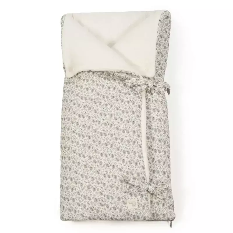 El saco arrullo Gala Mint destaca por su versatilidad. Gracias a su diseño multifuncional, puede utilizarse como arrullo para el capazo o cochecito y, al abrirse completamente, como manta para la cuna o superficie de juegos.