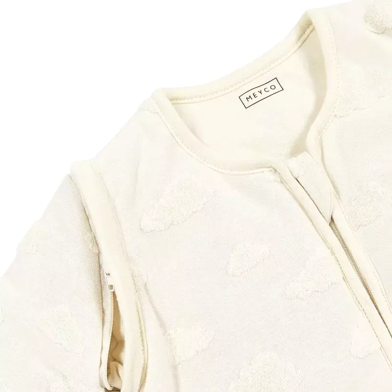 El saco de dormir bebé invierno Meyco Baby Clouds Natural incorpora mangas extraíbles mediante cremallera, permitiendo adaptarlo fácilmente a la estación o temperatura del dormitorio. En invierno ofrece un abrigo extra y, al retirarlas, se convierte en un saco ideal para la primavera o el otoño.