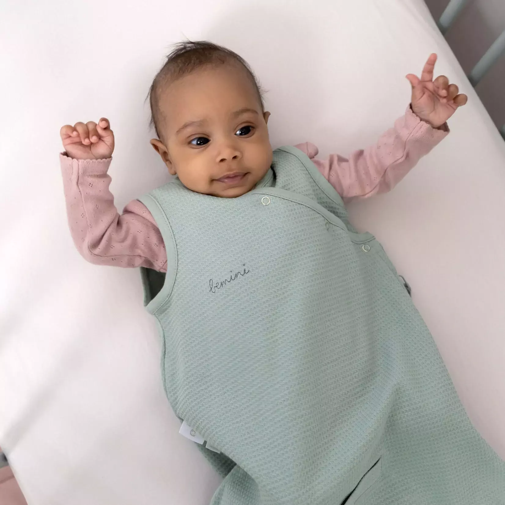 Con el saco de dormir bebé Bemini Waffle Orgánico 1-4M TOG 1, tu bebé disfrutará de noches seguras, cálidas y confortables, siempre protegido y con el mejor descanso.