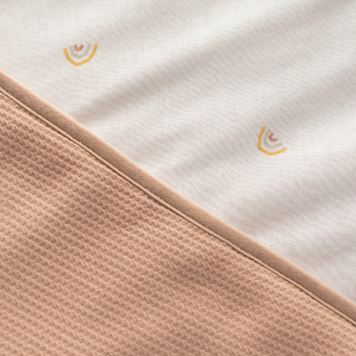- El diseño en tejido waffle natural aporta un estilo elegante, atemporal y combina con cualquier textil infantil.