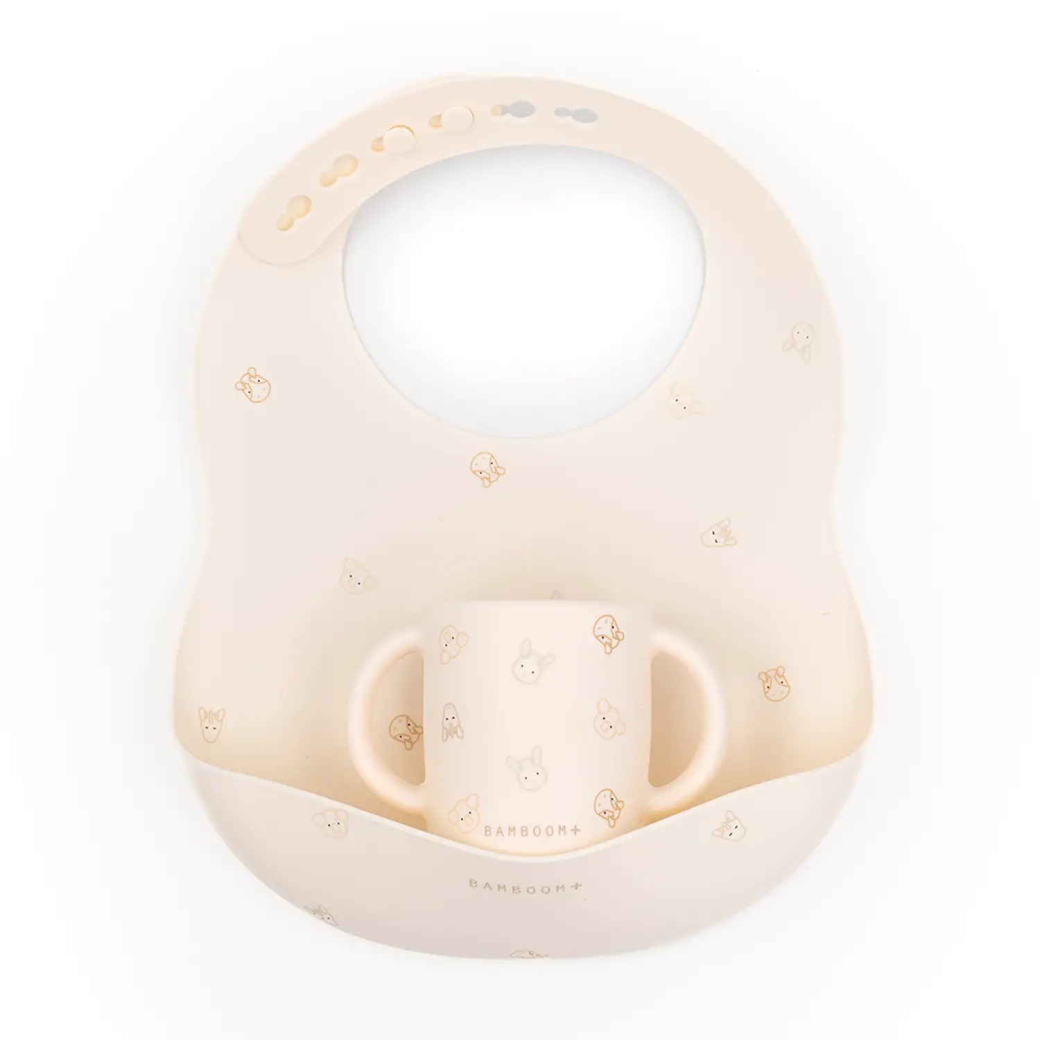 Este set de alimentación está diseñado para hacer que los momentos de comida sean más cómodos, limpios y divertidos tanto para los bebés como para los padres. Combinando practicidad, seguridad y estilo, incluye un babero de silicona con bolsillo recoge-migas y una taza con asas, ideal para ayudar a los más pequeños a desarrollar su independencia a la hora de comer y beber.