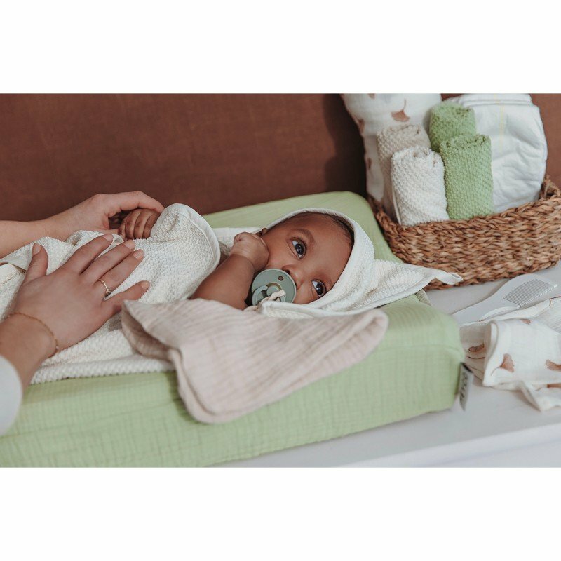 Estas toallitas destacan por su tejido con estructura tipo “popcorn”, que les da un aspecto único, con un tacto lujoso y una excelente absorción. Además, están disponibles en varios colores que combinan perfectamente con el resto de la colección Meyco Baby, para mantener una estética coordinada y elegante en tus accesorios de bebé.