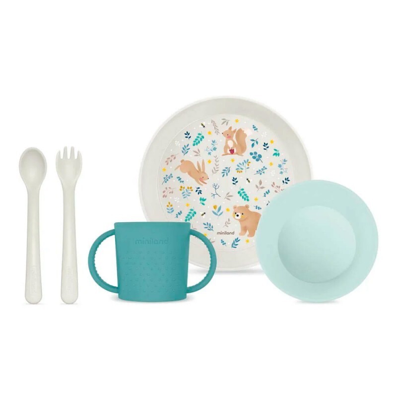 Vajilla bebé Miniland Mealset completa con plato, vaso y cubiertos
